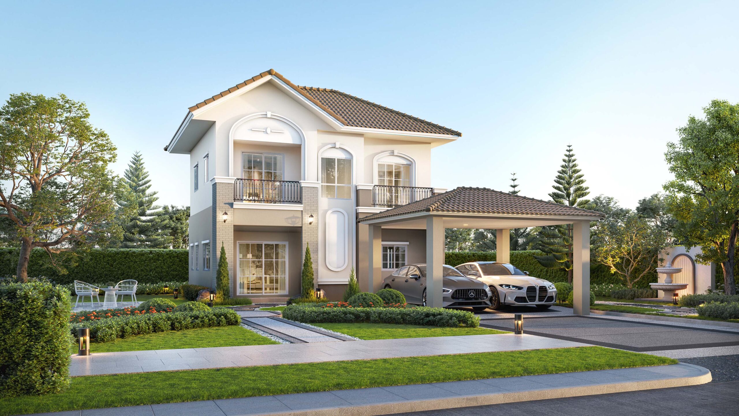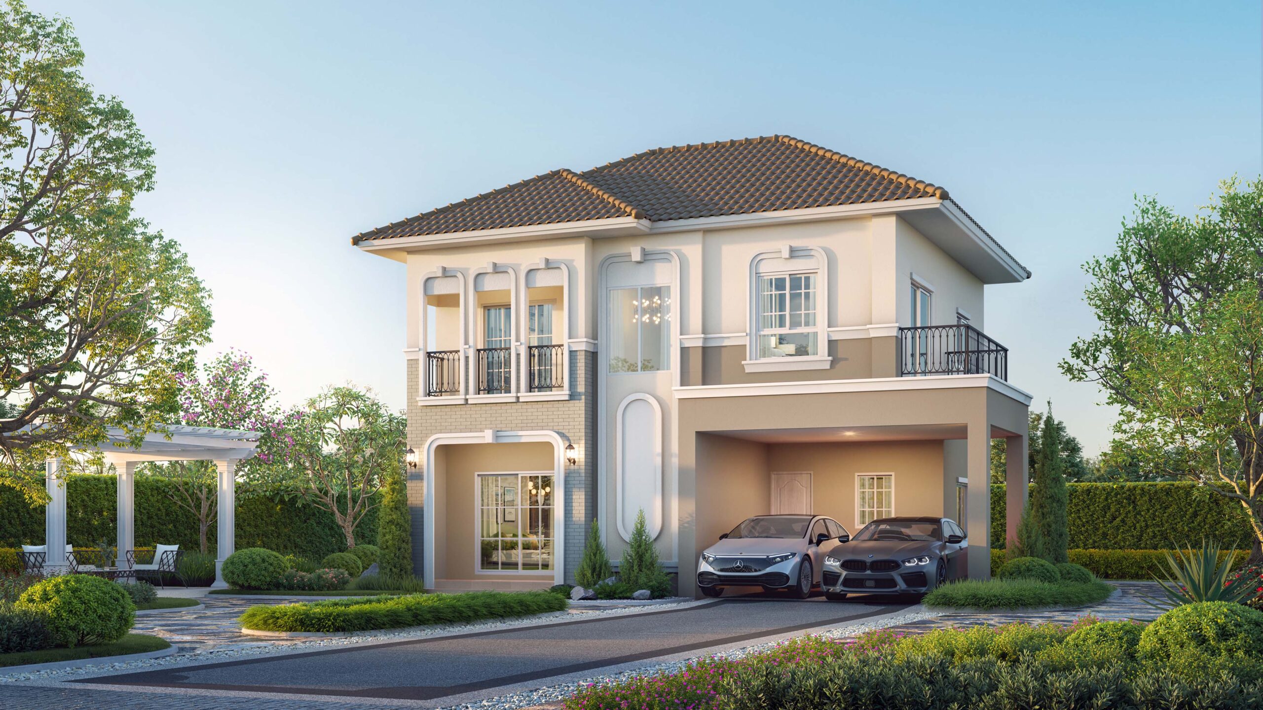 บ้านเดี่ยวดีไซน์ใหม่ สไตล์ French Colonial ขนาดพื้นที่ใช้สอย 167 ตร.ม.* 4 ห้องนอน 3 ห้องน้ำ 2 ที่จอดรถ ห้องครัวแยกเป็นสัดส่วน พร้อมพื้นที่สำหรับทำเป็นครัวไทย หรือโซนซักล้าง