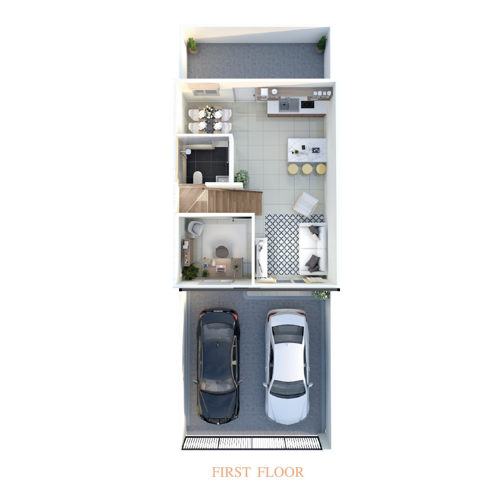พื้นที่ใช้สอย 105 ตร.ม.**3 ห้องนอน 2 ห้องน้ำ 1 ห้องรับแรก ส่วนเตรียมอาหาร ที่จอดรถ 1 คัน