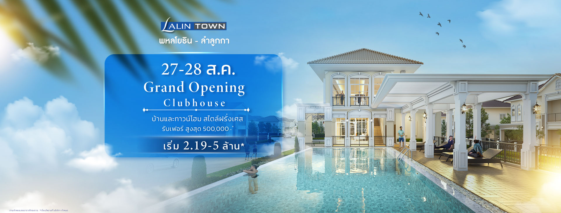 ลลิลทาวน์ ลำลูกกา-คลอง 227-28 ส.ค. Grand Opening Clubhouseพร้อมข้อเสนอที่ดีที่สุด รับเฟอร์ฯ สูงสุด 500,000.-*