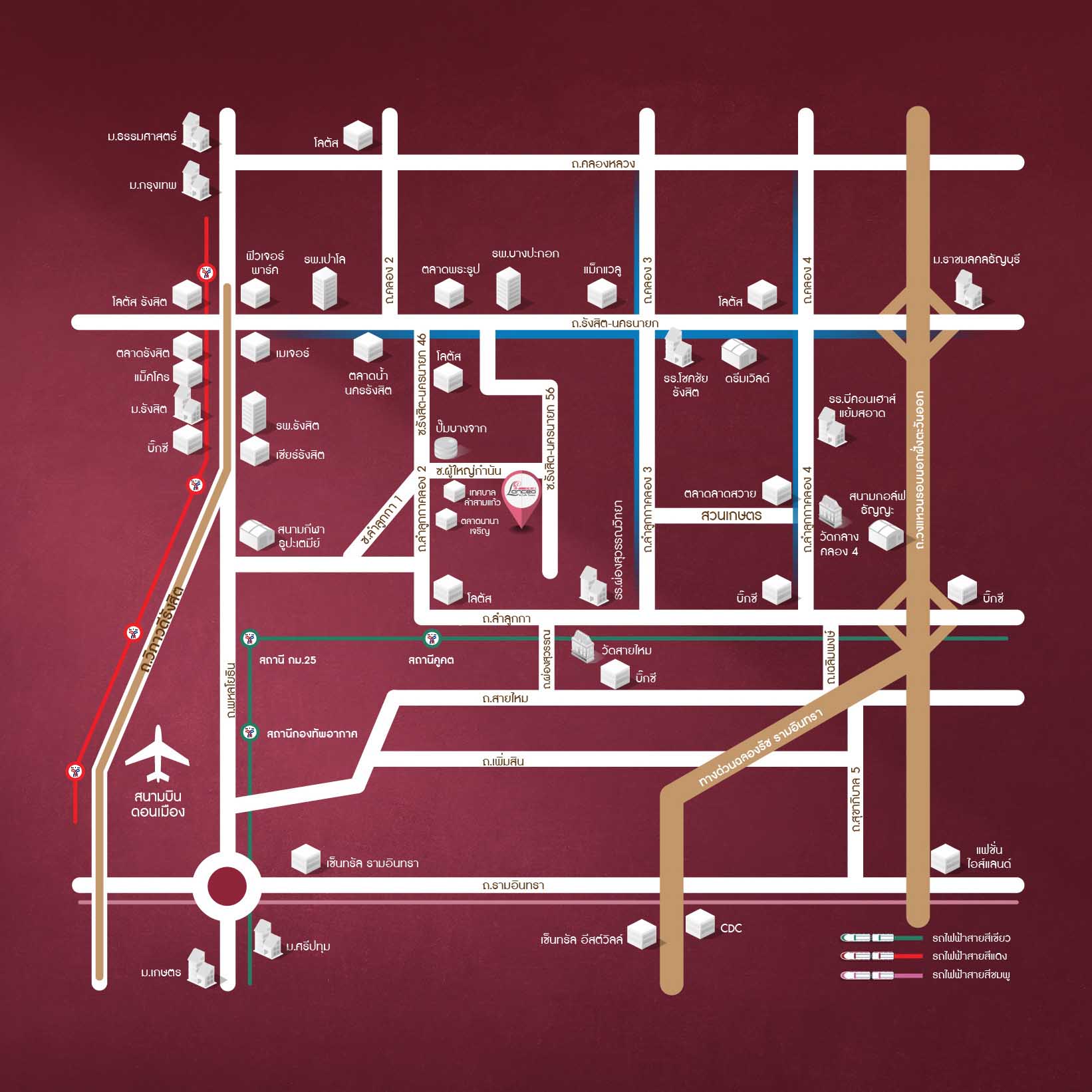 บ้าน ลำลูกกา โครงการนี้มอบสัมผัสแห่งการอยู่อาศัย บนทำเลศักยภาพ เชื่อมต่อการใช้ชีวิตบนถนนลำลูกกา – ถนนรังสิต – นครนายก – ถนนวงแหวนตะวันออก – ถนนสายไหม – ถนนพหลโยธิน – ถนนวิภาวดี ใกล้สิ่งอำนวยความสะดวกครบครัน อาทิ แฟชั่นไอส์แลนด์ ฟิวเจอร์พาร์ครังสิต บิ๊กซีลำลูกกา โลตัสรังสิต – คลอง 4 อีกทั้งเดินทางสะดวกใกล้รถไฟฟ้าสายสีเขียว ทางด่วนจตุโชติ ดอนเมืองโทลล์เวย์