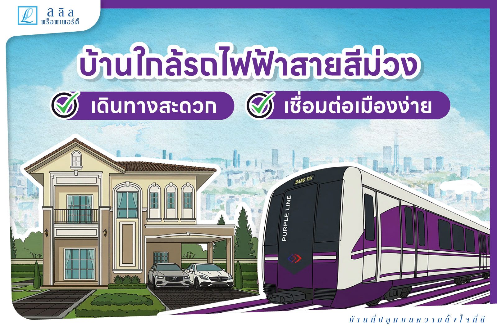 บ้านใกล้รถไฟฟ้าสายสีม่วงกำลังได้รับความสนใจมากขึ้นในปัจจุบัน เนื่องจากเป็นทำเลที่เดินทางสะดวก สามารถเชื่อมต่อเข้าสู่ตัวเมืองได้ง่าย อีกทั้งยังรายล้อมไปด้วยสิ่งอำนวยความสะดวกต่าง ๆ ไม่ว่าจะเป็นห้างสรรพสินค้า โรงพยาบาล โรงเรียน และแหล่งงานสำคัญ จึงเหมาะสำหรับการอยู่อาศัยของครอบครัวยุคใหม่ที่ต้องการความสะดวกสบายในชีวิตประจำวัน