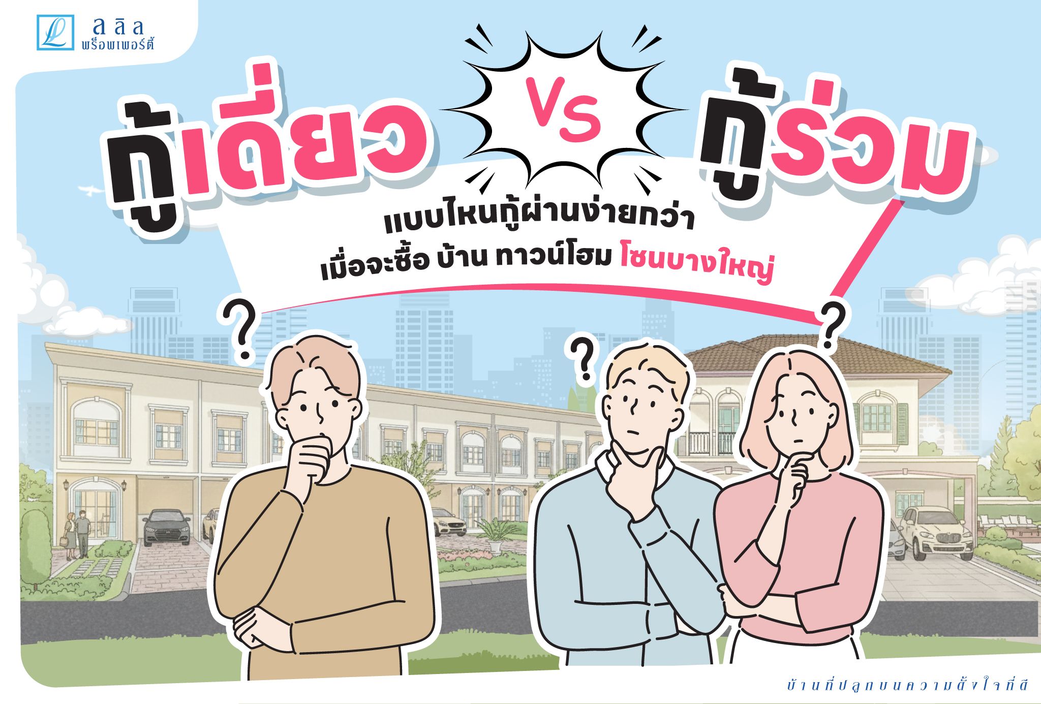 ✔ หากกำลังดูโครงการลลิล พร็อพเพอร์ตี้  บ้าน ทาวน์โฮม ในโซนบางใหญ่, รัตนาธิเบศร์, บางบัวทอง หรือนนทบุรี แนะนำให้ลองทำ “Pre-approval” ทั้งกู้เดี่ยว + กู้ร่วม เพื่อเปรียบเทียบข้อเสนอจริง เพราะบางครั้งการกู้ร่วมช่วยเพิ่มวงเงินได้มาก ทำให้คุณได้บ้านที่ตรงใจมากขึ้นในราคาใกล้เคียงเดิม