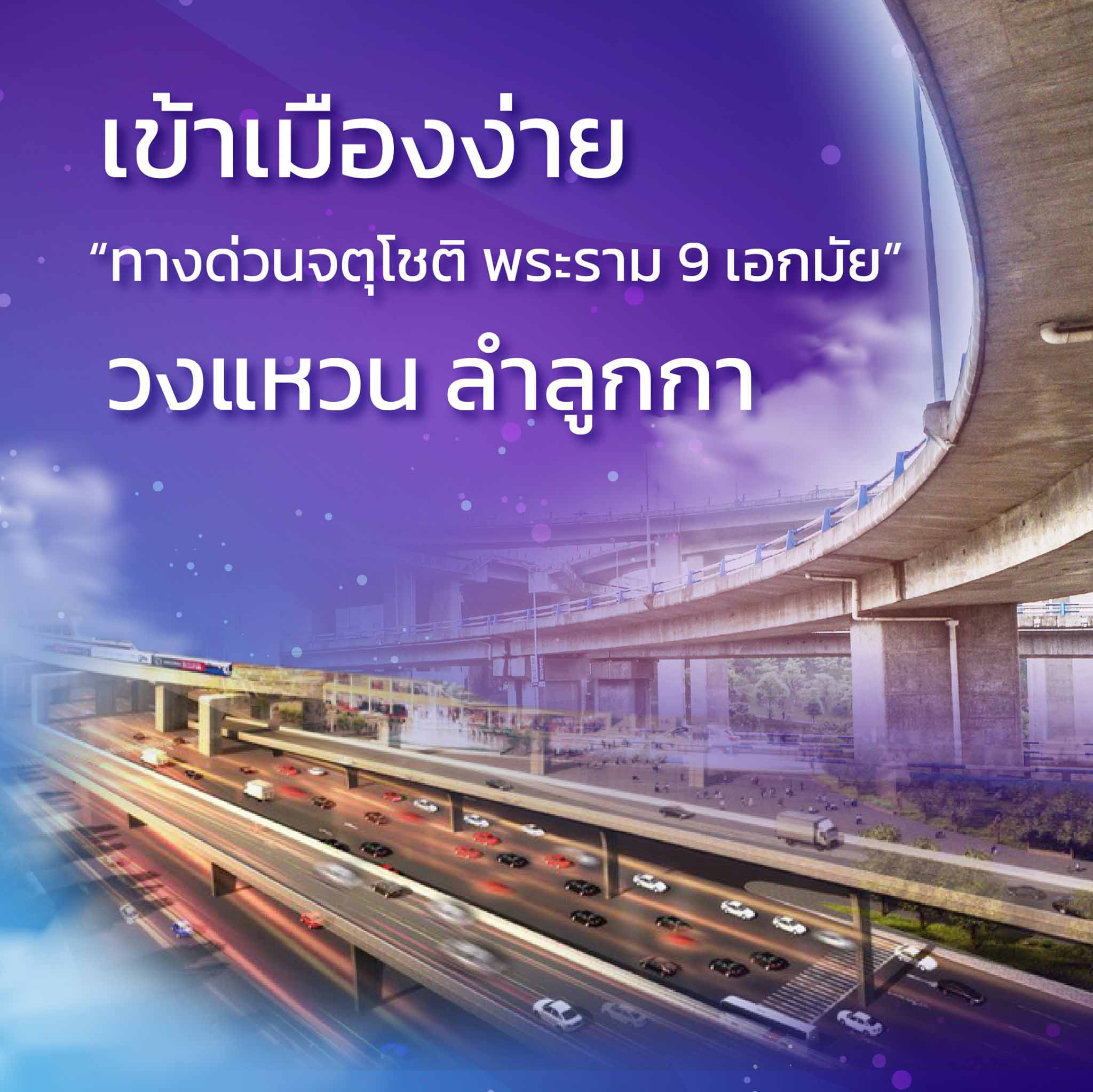 ใกล้รถไฟฟ้า 2 สาย สายสีแดง และสายสีเขียว เชื่อมต่อถนนพระราม9 เอกมัย ด้วยทางด่วนจตุโชติ และวงแหวนลำลูกกา