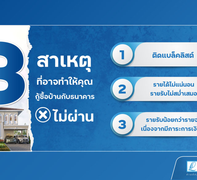 3 สาเหตุที่อาจทำให้คุณกู้ซื้อบ้านกับธนาคารไม่ผ่าน 1. ติดแบล็คลิสต์2. รายได้ไม่แน่นอน รายรับไม่สม่ำเสมอ3. […]