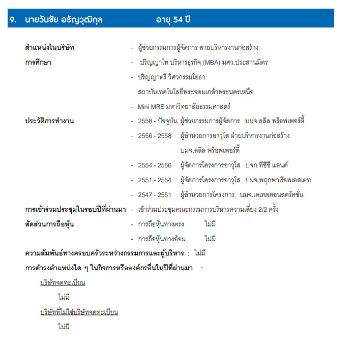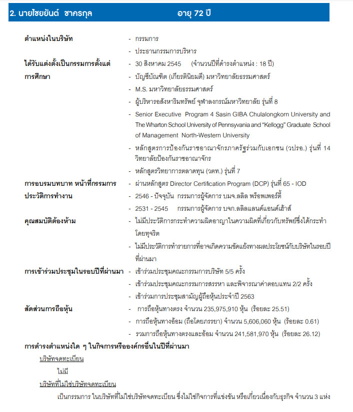 | นายไชยยันต์ ชาครกุล | ประธานกรรมการบริหาร |