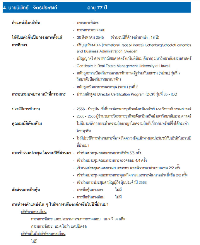 | นายนิพัทธ์ จิตรประสงค์ | กรรมการ กรรมการอิสระ และกรรมการตรวจสอบ |
