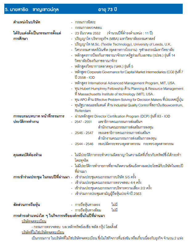 | นายสาธิต ชาญเชาวน์กุล | กรรมการ กรรมการอิสระ และกรรมการตรวจสอบ |