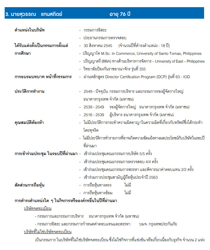| นายสุวรรณ แทนสถิตย์ | กรรมการ กรรมการอิสระ และประธานกรรมการตรวจสอบ |