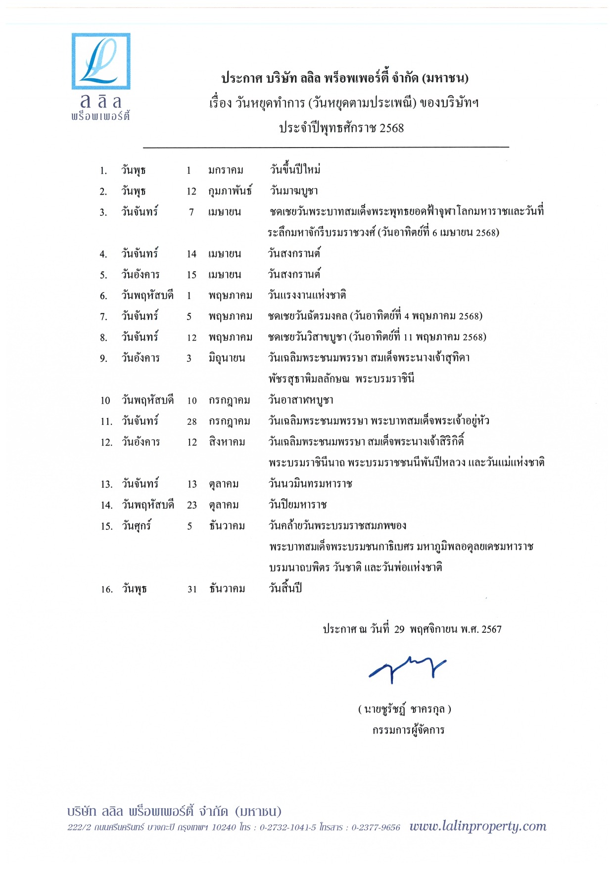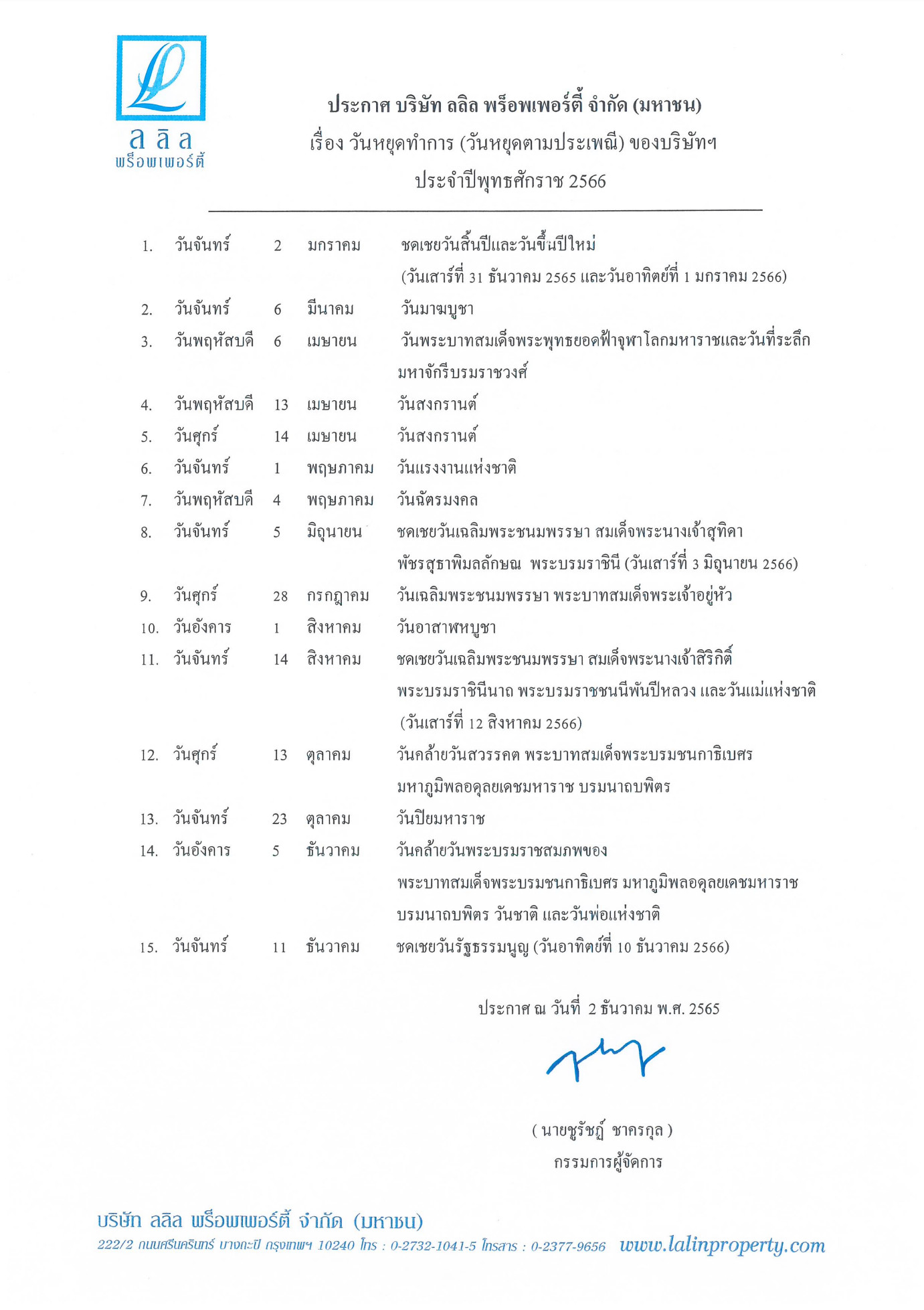 วันหยุดประจำปี