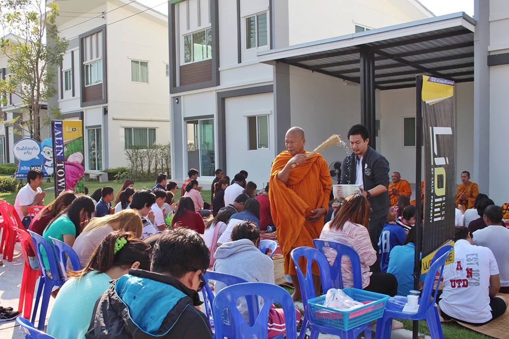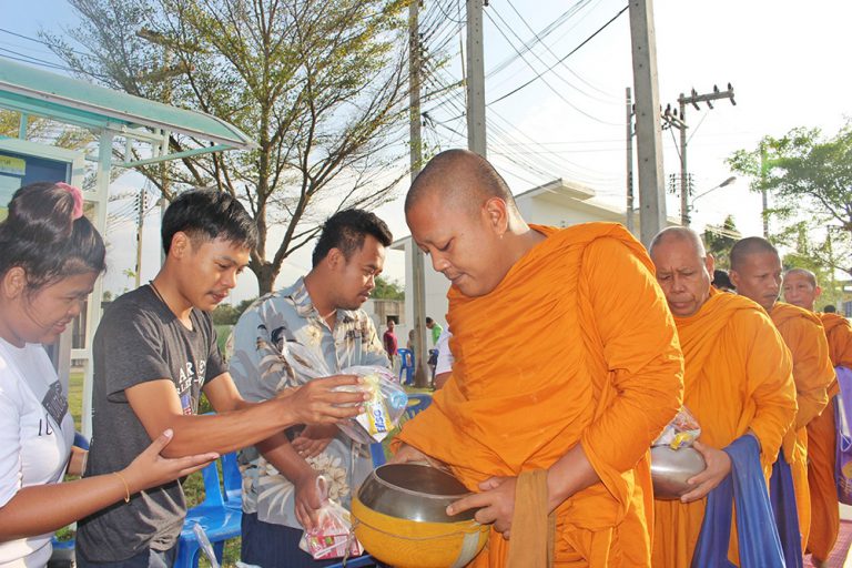 ชวนลูกบ้านร่วมทำบุญตักบาตรอาหารแห้งกับพระภิกษุสงฆ์ 9 รูป
