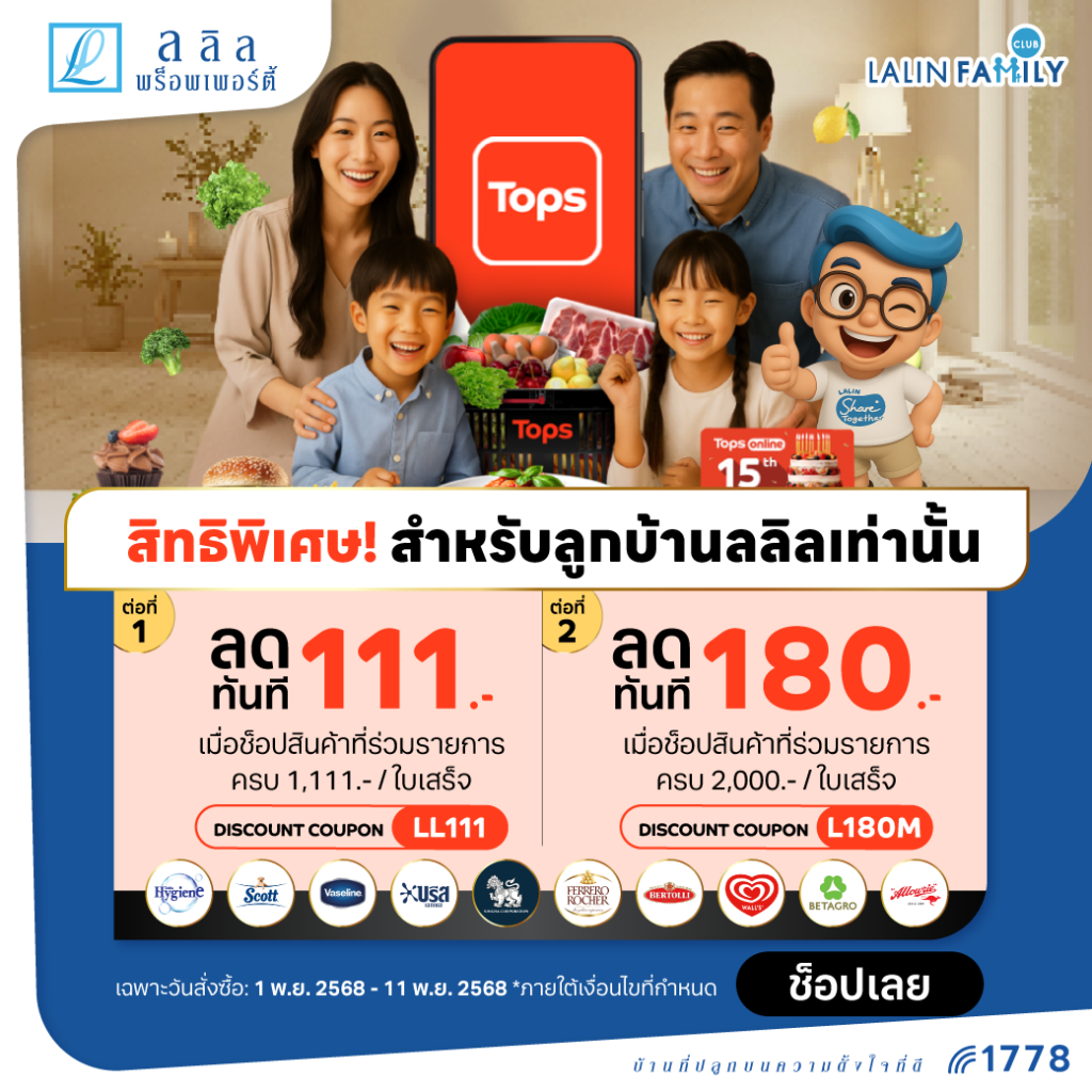 เติมเต็มทุกช่วงเวลาดีๆ ที่จะทำให้คุณและครอบครัวเพลิดเพลินไปกับกิจกรรมสุด Exclusive มากมาย พร้อมรับส่วนลดและสิทธิประโยชน์ที่ครอบคลุมทุกการใช้ชีวิต เฉพาะ “คุณ” เฉพาะ “ลูกบ้านลลิล”