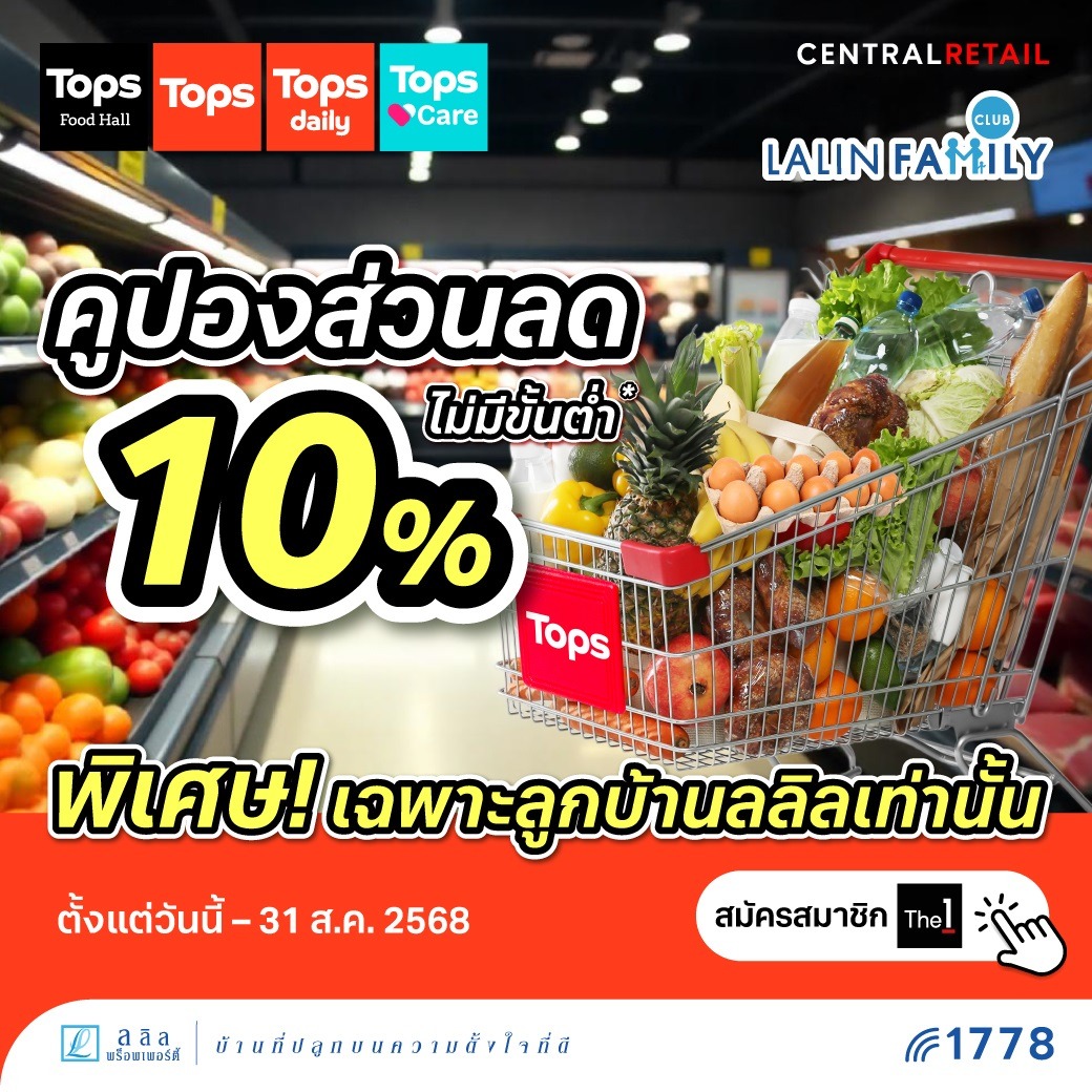 🎉 สิทธิ์สุดเอ็กซ์คลูซีฟ! 🏡 ลูกบ้านลลิลลด 🛒 10% ❌ ไม่มีขั้นต่ำ ❌ ไม่มีลิมิตส่วนลด ที่ Tops Online 🧾✨