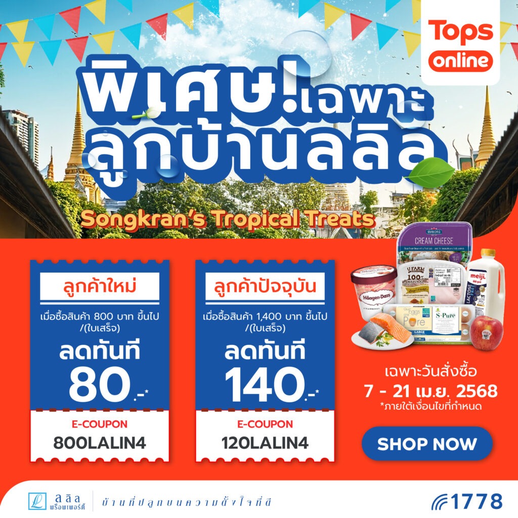 📌 เงื่อนไขการใช้คูปอง:✔️ สิทธิพิเศษเฉพาะลูกบ้านลลิลเท่านั้น✔️ ใช้ได้สำหรับการสั่งซื้อผ่าน Tops Online เว็บไซต์และแอปพลิเคชัน✔️ จำกัดการใช้ 1 คูปอง / คำสั่งซื้อ✔️ คำนวณยอดซื้อหลังหักส่วนลดอื่นๆ แล้ว✔️ ส่วนลดไม่สามารถแลกเปลี่ยนหรือทอนเป็นเงินสดได้✔️ ยกเว้นสินค้าบางรายการ เช่น สินค้าซื้อเหมา, สินค้ายกแพ็ค, เครื่องใช้ไฟฟ้า, กระเช้าของขวัญ, เครื่องดื่มแอลกอฮอล์, อาหารเสริม, นมผงเด็ก, ยา และสินค้าพรีออเดอร์ตามเทศกาล