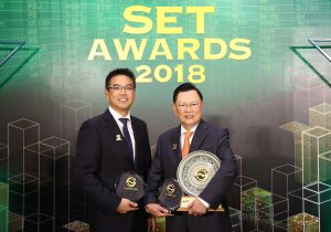 ณ หอประชุมสุกรีย์ แก้วเจริญ อาคารตลาดหลักทรัพย์แห่งประเทศไทย โดยตลาดหลักทรัพย์แห่งประเทศไทย ร่วมกับวารสารการเงินธนาคาร ได้จัดงาน SET Awards 2018 ขึ้น เพื่อเป็นการมอบรางวัลประกาศเกียรติคุณและเชิดชูบริษัทจดทะเบียน บริษัทหลักทรัพย์ บริษัทหลักทรัพย์จัดการกองทุน บริษัทที่ปรึกษาทางการเงิน และผู้บริหารสูงสุดของบริษัทจดทะเบียนในตลาดทุนที่มีความยอดเยี่ยม และโดดเด่นในด้านต่างๆ อันสะท้อนให้เห็นถึงศักยภาพ และความสามารถในการดำเนินงานในการก้าวสู่องค์กรต้นแบบของตลาดทุน