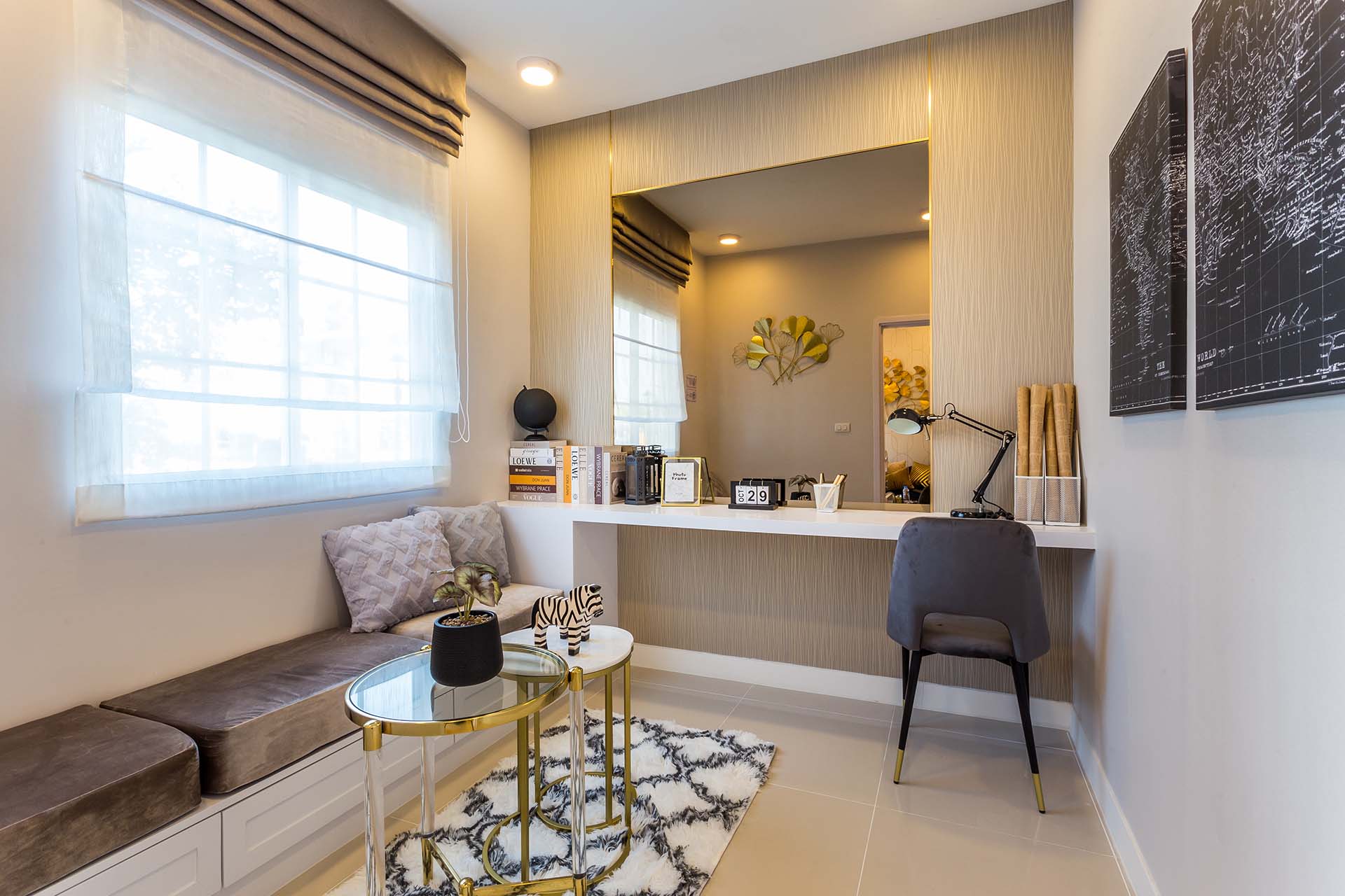 บริเวณด้านล่างมีห้องรับแขกที่มีขนาดกว้างขวาง สามารถแบ่งส่วนเตรียมอาหารไว้เพื่อเพิ่มความสุขในการใช้ชีวิตประจำวันได้อย่างลงตัว ภายในบ้านสามารถปรับฟังก์ชันห้องเอนกประสงค์ให้ตอบโจทย์ทุกไลฟ์สไตล์การอยู่อาศัยของทุกคนในครอบครัวได้อย่างอิสระ ในส่วนกลางบ้านมีโถงบันไดที่สูงโปร่งพร้อมช่องแสงธรรมชาติ ที่จะช่วยในเรื่องอากาศถ่ายเทหมุนเวียนได้อย่างเต็มที่  บริเวณส่วนกลางมีฟิตเนสวิวสวนสไตล์ Provence ช่วยในเรื่องความรื่นรื่นและดูดซับมลพิษทางอากาศ ช่วยป้องกันฝุ่น PM 2.5 ที่เป็นเรื่องใกล้ตัวอีกด้วย นอกจากนี้ยังมีระบบรักษาความปลอดภัยไว้ดูแลตลอด 24 ชั่วโมง ให้คุณใช้ชีวิตอย่างอุ่นใจ