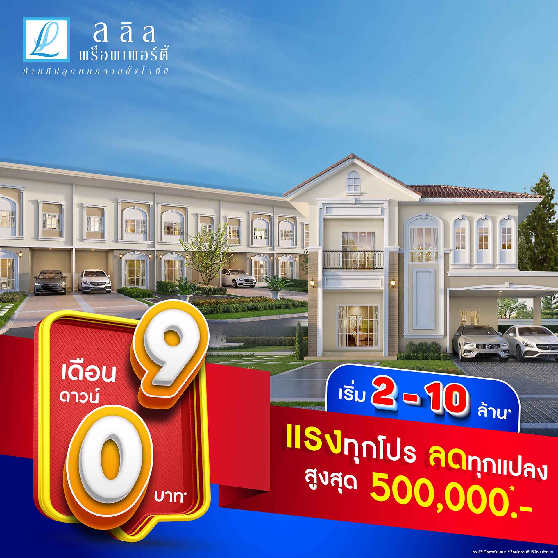 ลลิล พร็อพเพอร์ตี้ จัดหนักมอบโปรสุดปัง!เดือน 9 ดาวน์ 0 บาท แรงทุกโปร ลดทุกแปลง สูงสุด 500,000 บาท