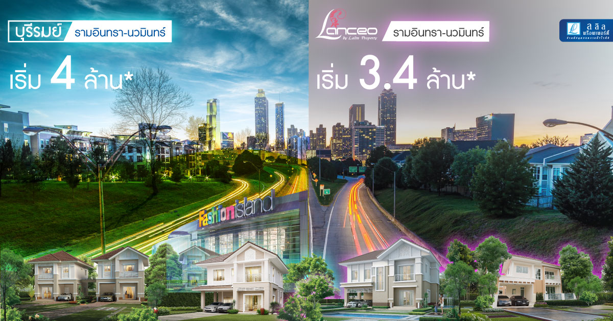 2 โครงการคุณภาพ ใกล้วงแหวนฯ ใกล้ทางด่วน ใกล้รถไฟฟ้า บนทำเลที่ดีที่สุดบุรีรมย์ รามอินทรา – นวมินทร์ ลากกระเป๋าพร้อมอยู่แต่งสวนทั้งหลังLanceo รามอินทรา – นวมินทร์ บ้านที่สร้างด้วยอิฐ ชีวิตพรีเมี่ยมไม่ต้องเข้าซอย สังคมส่วนตัวพร้อมคลับเฮ้าส์ แลนซีโอ รามอินทรา-นวมินทร์ เริ่ม 3.4 – 7 ล้าน บุรีรมย์ รามอินทรา-นวมินทร์ เริ่ม 4 ล้านฟรี*ค่าโอนฯ+แอร์ลงทะเบียนรับส่วนลดเพิ่ม30,000บาท*เงื่อนไขเป็นไปตามที่บริษัทฯกำหนด