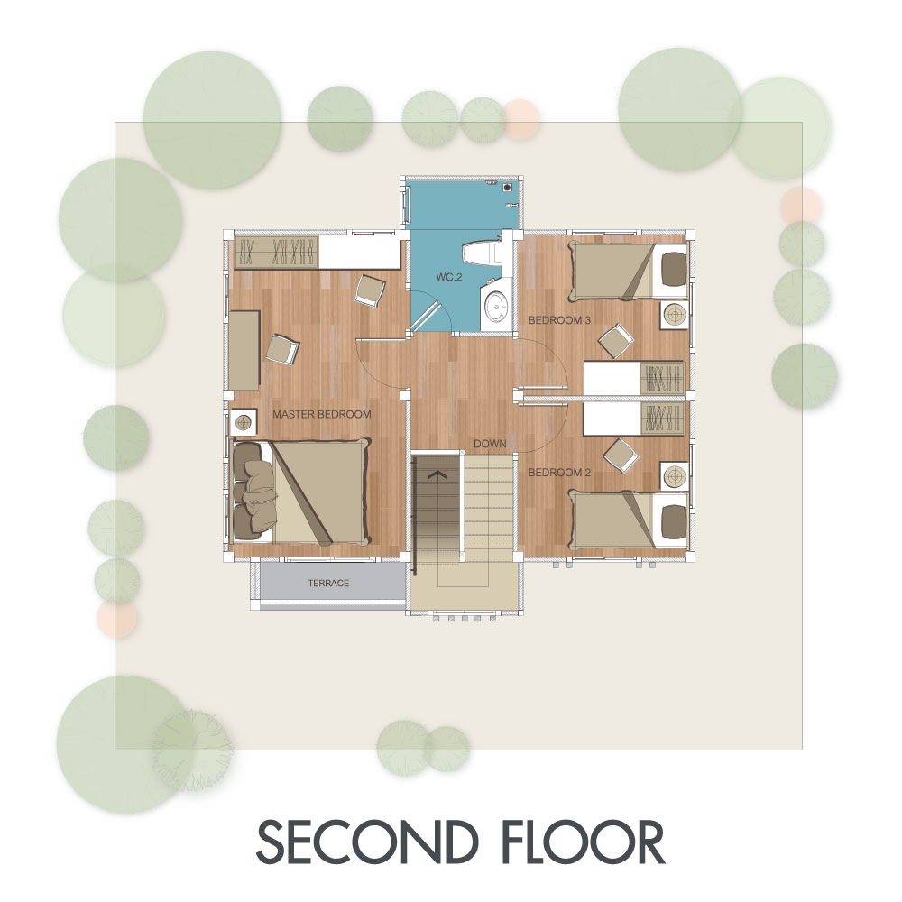 • สวนสาธารณะขนาดใหญ่ 4 สวนกลางโครงการ ให้ทุกโซนได้มีบรรยากาศร่มรื่น