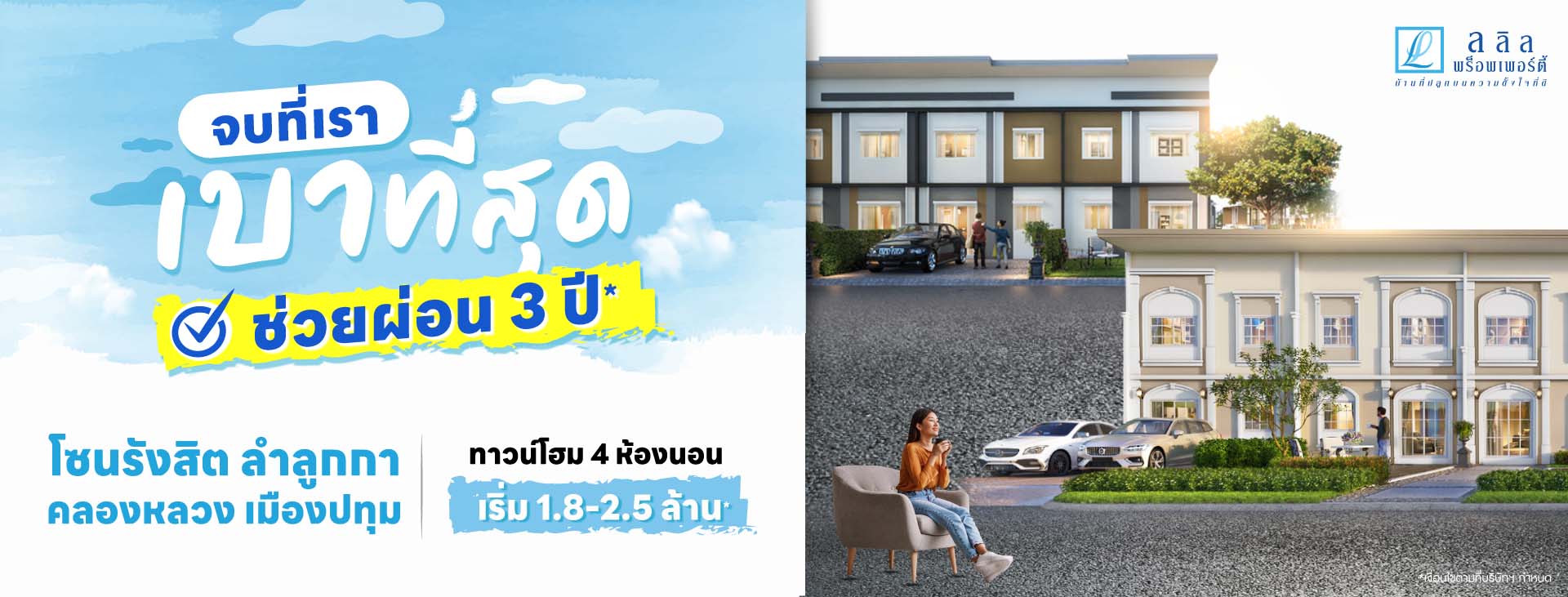 ☁ จบที่เรา เบาทื่สุด ☁ลดเพิ่มสูงสุด 300,000 บาท*.𝟏𝟎 โครงการพร้อมอยู่จากลลิล พร็อพเพอร์ตี้📍ทาวน์โฮมโครงการใหม่ บนทำเลศักยภาพย่านรังสิต – ลำลูกกา – คลองหลวง – เมืองปทุมธานี 🔥.ทาวน์โฮม 3- 4 ห้องนอน 2 ที่จอด*พร้อมของแถมจัดเต็ม..🎁ฟรี! เฟอร์นิเจอร์ *ฟรี! ค่าส่วนกลาง 3 ปี*ฟรี! ปั๊มน้ำ และ แทงค์น้ำ*ฟรี! แอร์* 3 เครื่องฟรี! ค่าธรรมเนียมโอนฯ.สุดยอดทำเลเชื่อมต่อทุกการเดินทาง📌ใกล้ รถไฟฟ้า 2 สาย📌ใกล้ ฟิวเจอร์ฯ รังสิต📌ใกล้ ทางด่วน อุดรรัถยา📌ใกล้ วงแหวนฯรอบนอก📌ใกล้ สนามบิน ดอนเมือง.📍โซนรังสิตรังสิต – คลองหลวง เริ่ม 2.09 ล้าน*รังสิต – คลอง 2 เริ่ม 2.19 ล้าน*วงแหวนฯ – รังสิต คลอง 4 เริ่ม 1.9 ล้าน*.📍โซนลำลูกกาลำลูกกา – คลอง 2 เริ่ม 2 ล้าน*ลำลูกกา – คลอง 4 เริ่ม 1.9 ล้าน*ลำลูกกา – คลอง 5 เริ่ม 1.8 ล้าน*ลำลูกกา – คลอง 6 เริ่ม 1.8 ล้าน*.📍เมืองปทุมฯกรุงเทพฯ – ปทุมธานี เริ่ม 1.99 ล้าน*รังสิต – บางพูน เริ่ม 1.99 ล้าน*.