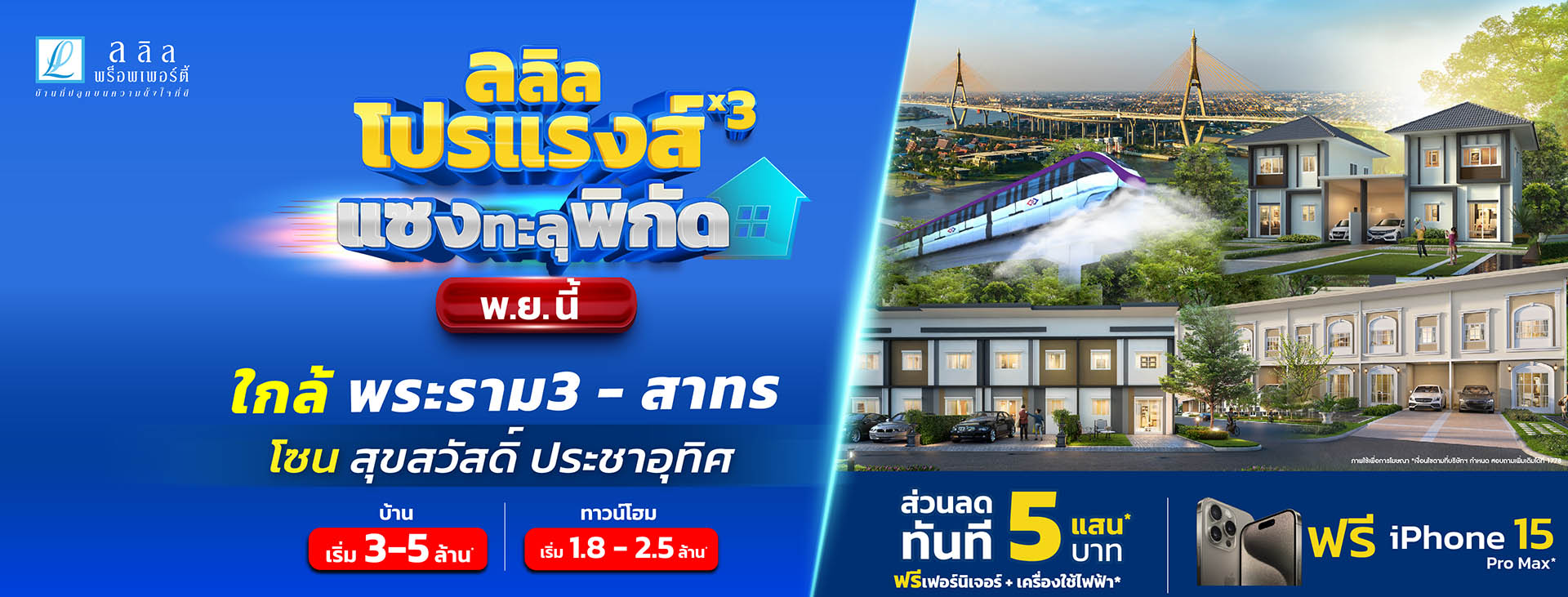 🔥พ.ย.นี้🔥I ลดสูงสุด 500,000 บาท* ฟรี IPhone 15 Pro max* ลลิลโปรแรงส์x3 แซงทะลุพิกัด แจกใหญ่..ท้ายปี* 💸 ฟรีทุกค่าใช้จ่าย* 💸 ฟรีเฟอร์ทั้งหลัง* 💸 ฟรีเครื่องใช้ไฟฟ้า* 💸 รับส่วนลดสุดกว่า 5 แสน*