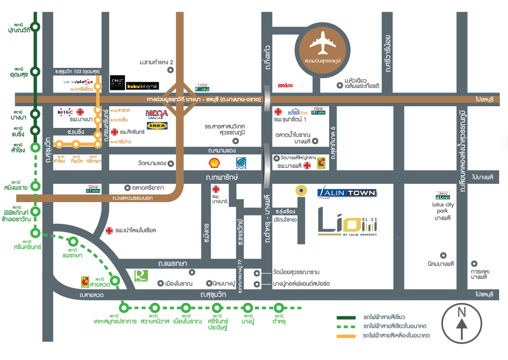 ให้ทุกความสุขเป็นเรื่องใกล้ตัว สะดวกทุกการเดินทาง เพียง 5 นาที**ถึงทางด่วน รายล้อมด้วยห้างสรรพสินค้าและไลฟ์สไตล์มอลล์ทั้ง MEGA บางนา,Robinson สมุทรปราการ, Market Village สุวรรณภูมิ, Lotus, BigC และ Makro