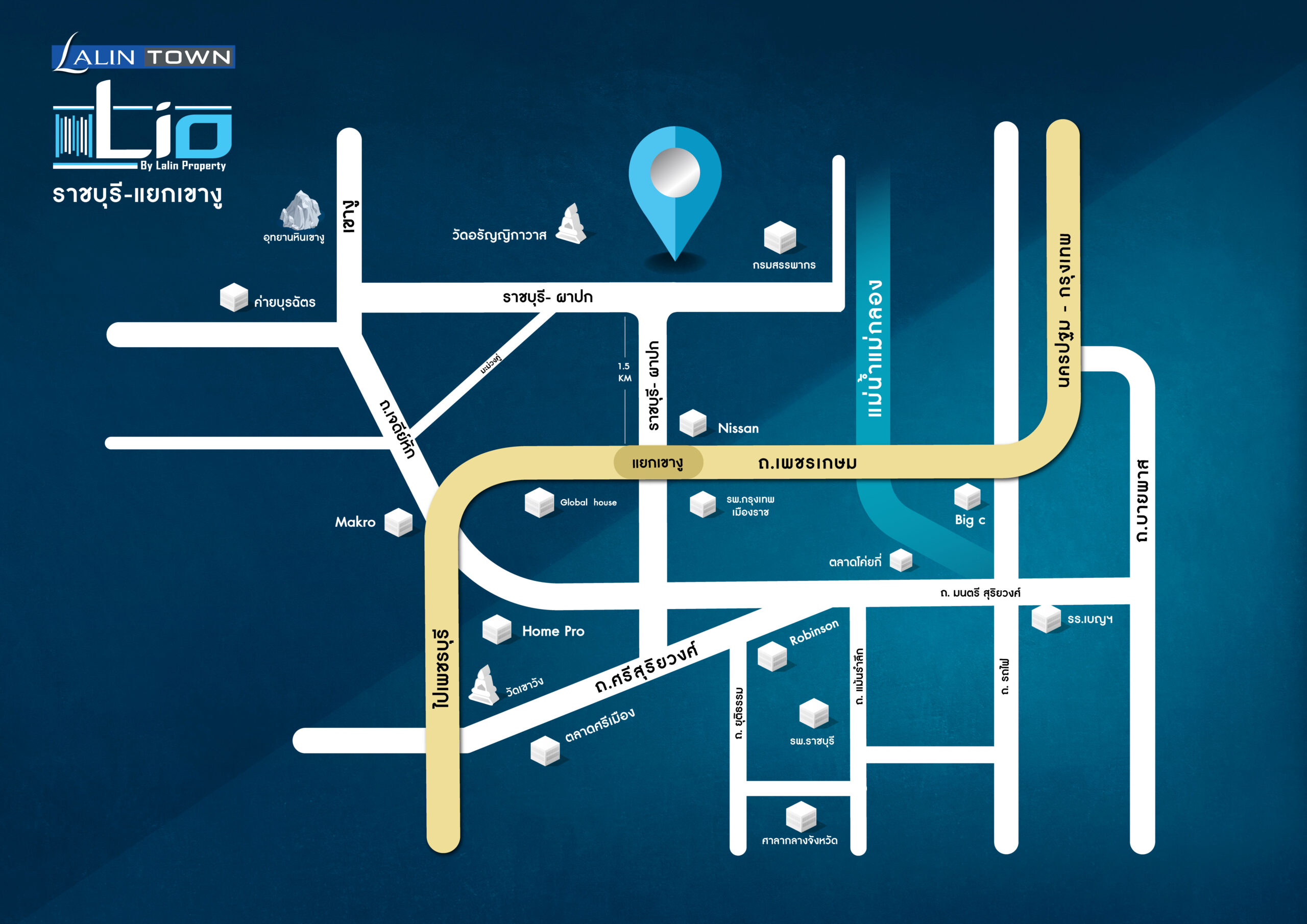 “ลลิลทาวน์ ไลโอ เพชรเกษม-แยกเขางู ” ตั้งอยู่บนทำเลที่มี บนถนน ราชบุรี-ผาปก ที่สามารถเดินทางเข้าสู่ศูนย์ราชการใจกลางเมือง สถานศึกษา โรงพยาบาล ห้างสรรพสินค้า ตลาด แหล่งงาน นิคมอุตสาหกรรมราชบุรี หรือ จะไปพักผ่อนย่อนใจที่ อุทยานเขาหินงู ก็เดินทางเข้า-ออกได้อย่างสะดวกสบาย