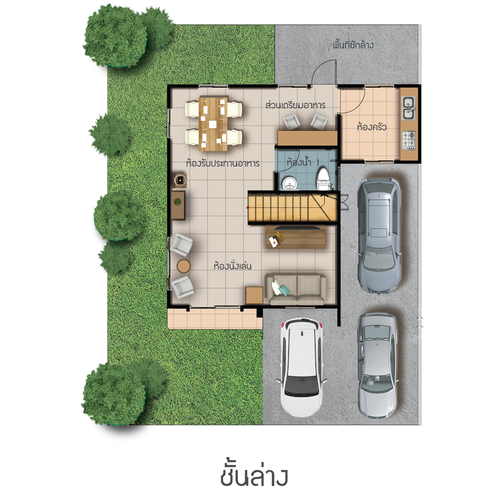 บ้านแนวคิดใหม่ พื้นที่ใช้สอย 141 ตร.ม.4 ห้องนอน 2 ห้องน้ำ 1 ห้องรับแขก 1 ห้องรับประทานอาหาร ครัวแยกสัดส่วน และที่จอดรถ 3 คัน