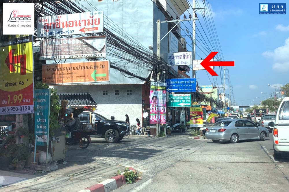 หลังจากที่กลับรถแล้ว ให้ชิดซ้าย ประมาณ 500 เมตร เลี้ยวเข้าซอยเทพารักษ์ 96 ซึ่งมีป้ายโครงเหล็กอยู่หน้าโครงการ