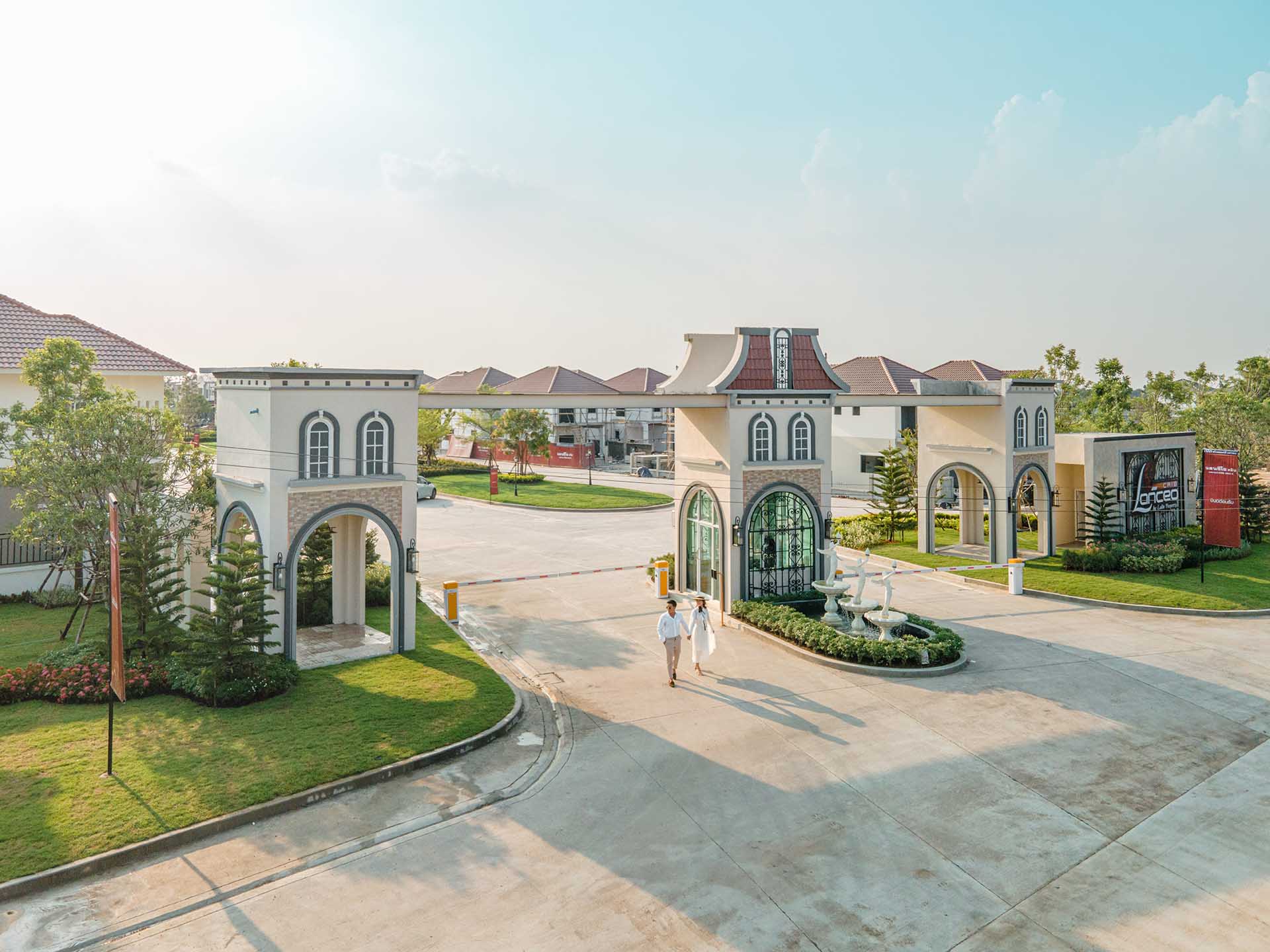 วันนี้ ลลิล พร็อพเพอร์ตี้ จะพามาชมโครงการกัน เริ่มจากเมื่อขับรถเข้ามาก็จะเจอกับซุ้มประตู Main Gate ขนาดใหญ่ ที่ออกแบบหรูหราสไตล์ฝรั่งเศส French Colonial Style ที่เป็นเอกลักษณ์เฉพาะของ ลลิล พร็อพเพอร์ตี้ เท่านั้น