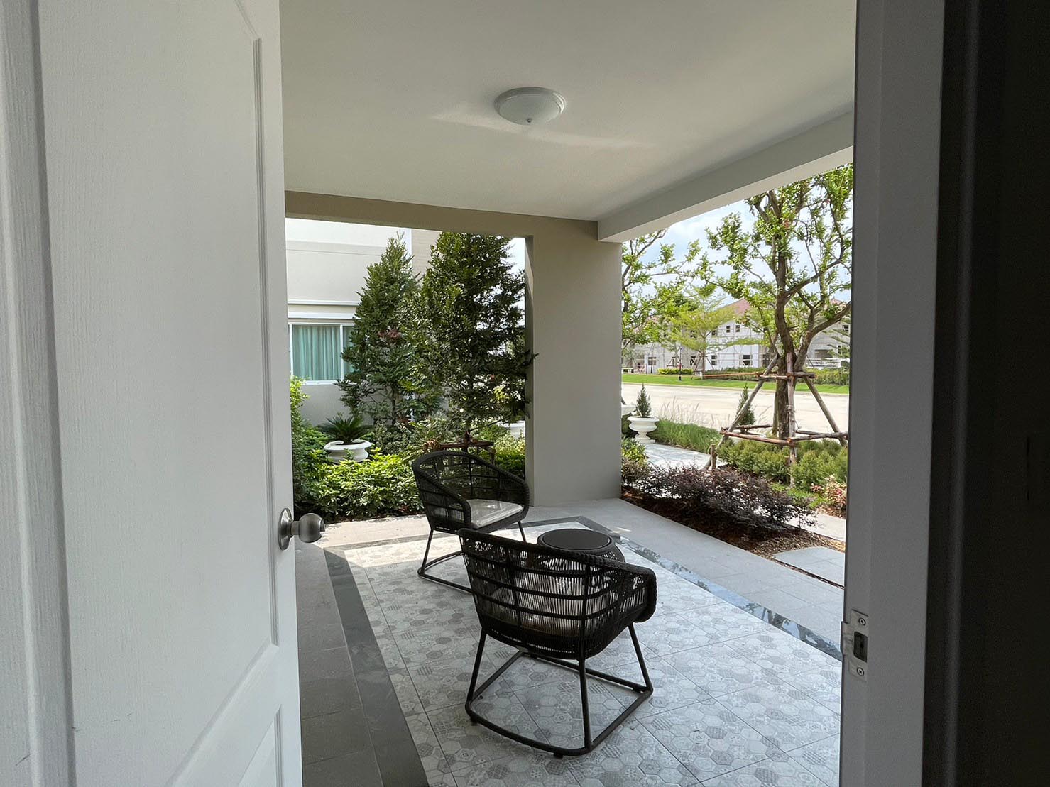 บริเวณหน้าบ้านทางโครงการได้ทำพื้นที่จอดรถในร่มสำหรับ 2 คัน และมีประตูเดินเข้าภายในตัวบ้านได้จากโรงจอดรถได้เลย