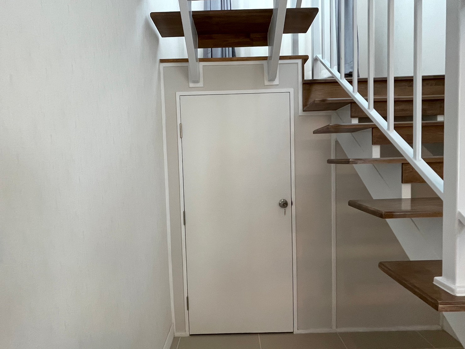 พื้นที่เก็บของ ทางโครงการได้เตรียมพื้นที่ไว้ให้บริเวณใต้บันได ซึ่งมีขนาดใหญ่และมีประตูปิดมาให้ ดูเรียบร้อยสบายตาสามารถเก็บของได้ไม่ว่าจะเป็น เครื่องดูดฝุ่น อุปกรณ์ทำสวน หรือ อุปกรณ์อื่นๆ