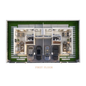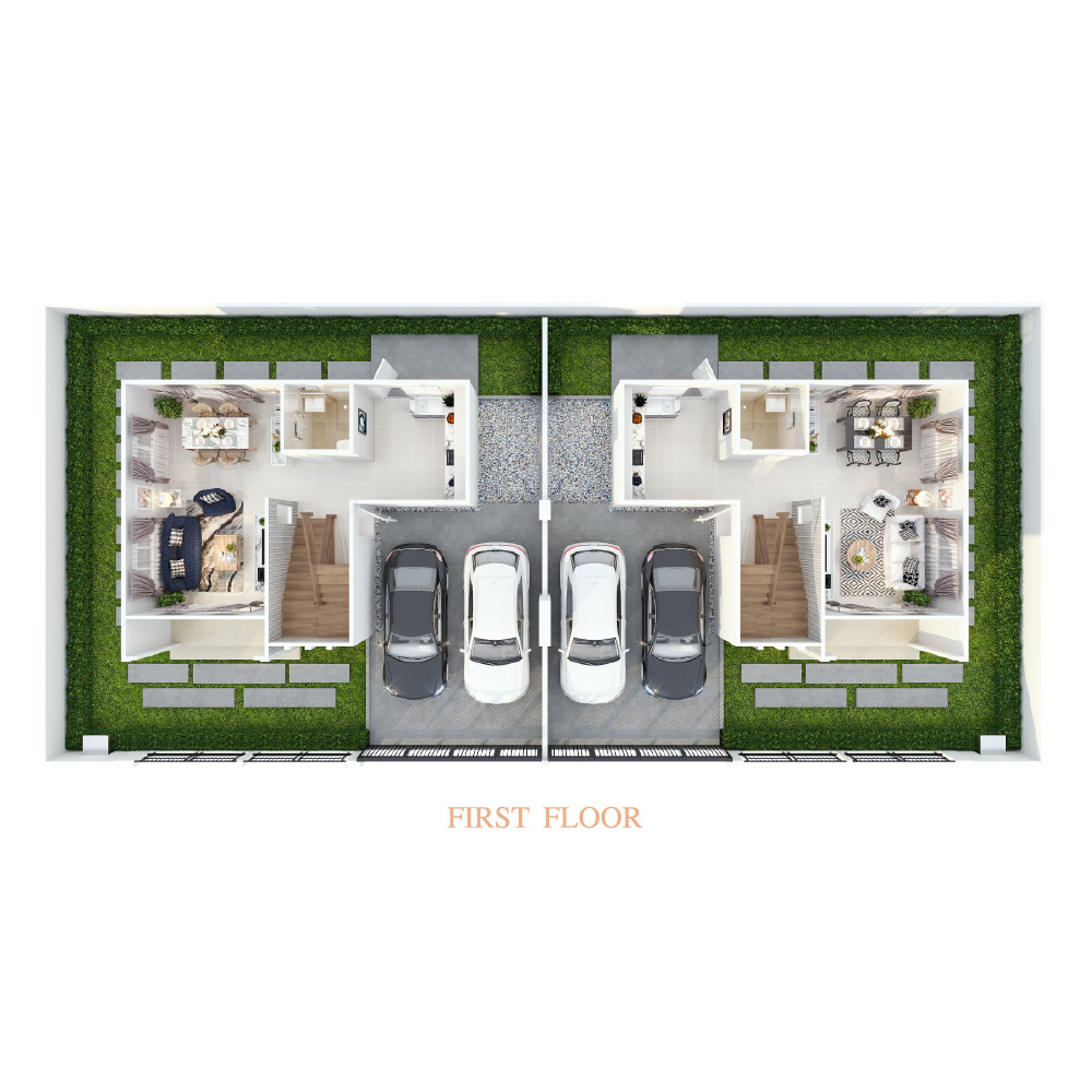 ชั้น 1 ด้านหน้าบ้านจะเป็นพื้นที่จอดรถสำหรับ 2 คัน โดยรอบๆ ตัวบ้านจะเป็นพื้นที่สวน ภายในชั้นล่างจะมี ห้องนั่งเล่น ที่เชื่อมต่อกับ โต๊ะรับประทานอาหาร มุมสำหรับจัดเตรียมอาหาร และยังมีห้องอเนกประสงค์ขนาดใหญ่ที่สามารถทำเป็นห้องทำงาน หรือ ห้องนอนผู้สูงอายุได้ครับ