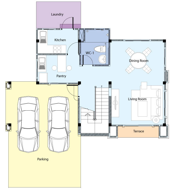บ้านเดี่ยว ขนาดพื้นที่ใช้สอย 175 ตร.ม. 3 ห้องนอน พร้อมระเบียงชมวิวในห้องนอนใหญ่ 3 ห้องน้ำ 1 ห้องรับแขก 1 ห้องรับประทานอาหาร ห้องครัวแยกเป็นสัดส่วน ทั้งครัวไทยและครัวฝรั่ง พร้อมส่วนเตรียมอาหาร (Pantry) และที่จอดรถ ในร่ม 2 คัน