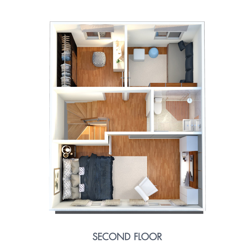 พื้นที่ใช้สอย 105* ตร.ม. 3 ห้องนอน 2 ห้องน้ำ 1 ห้องรับแขก ส่วนเตรียมอาหาร ที่จอดรถ 1 คัน