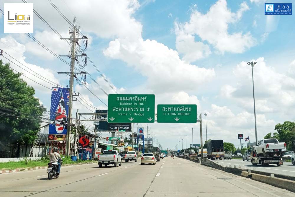 ให้ข้ามสะพานด้านซ้ายมือ จะพบกับซุ้มโครงการขนาดใหญ่ ถึงแล้วโครงการ Lio Bliss วงแหวนฯ - ปิ่นเกล้า (พระราม 5)