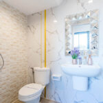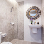 ห้องน้ำขนาดใหญ่ พร้อมชุดสุขภัณฑ์อย่างครบครัน