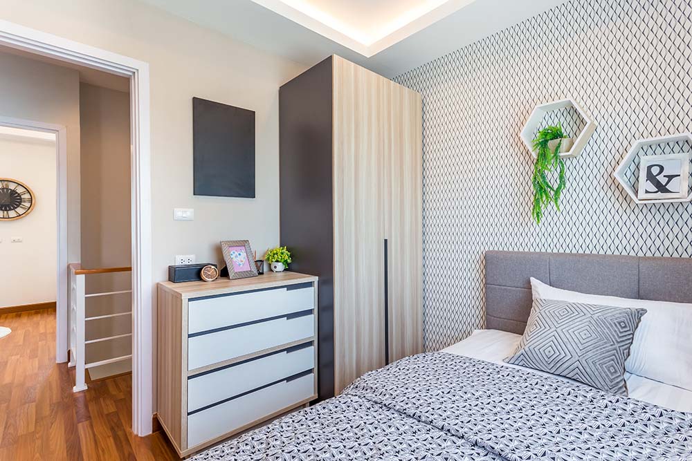 ส่วนห้องนอน 2และ3 ขนาดพื้นที่ใช้สอยเท่ากัน มีพื้นที่วางตู้เสื้อผ้าและโต๊ะทำงานในห้อง