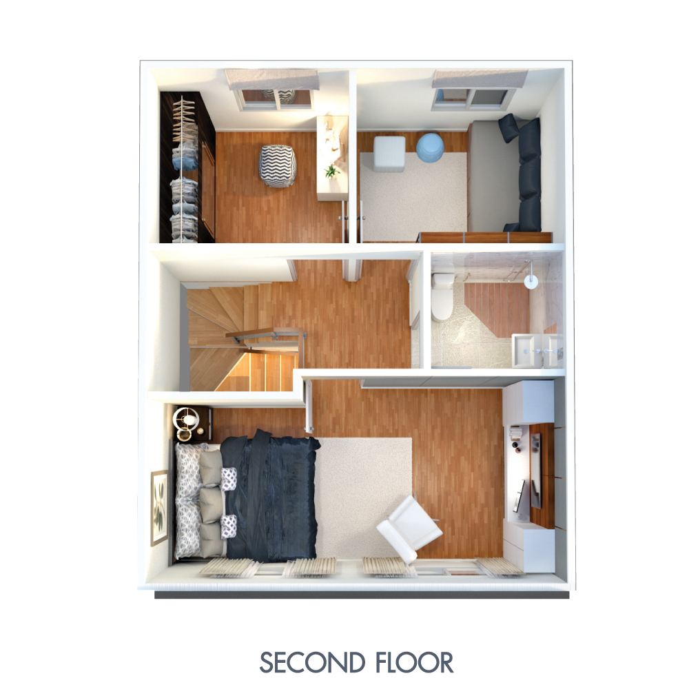 ในชั้นที่ 2 มี 3 ห้องนอน 1 ห้องน้ำ ขยายความสุขให้กว้างยิ่งขึ้นกับ Master Bedroom ขนาดใหญ่ ความยาวห้องเท่ากับความกว้างตัวบ้าน