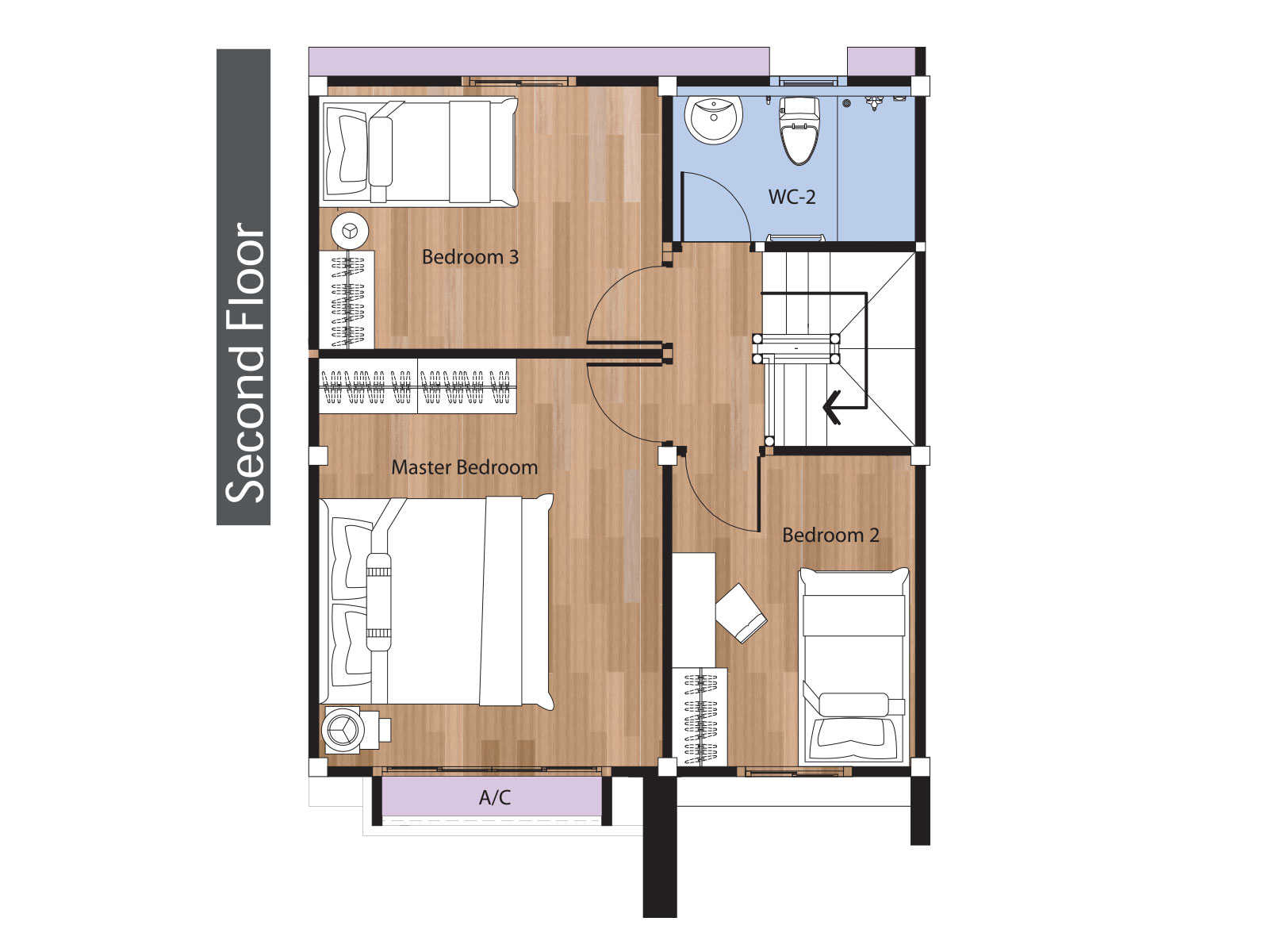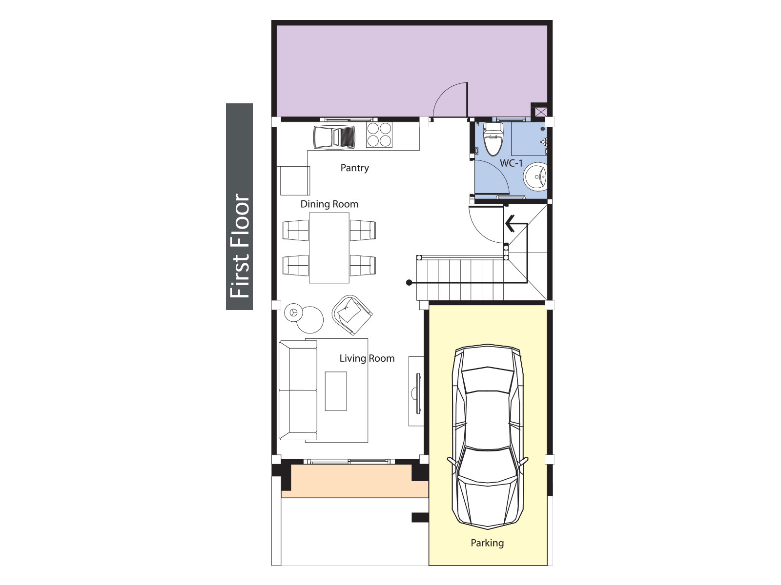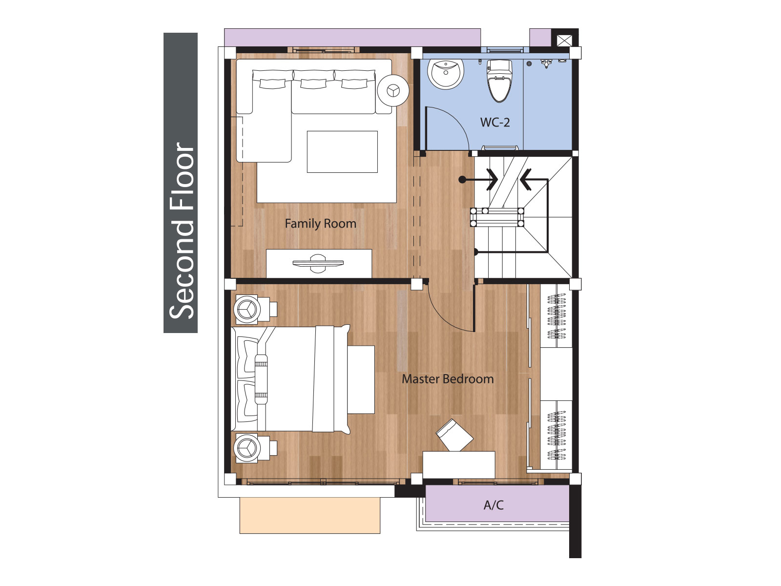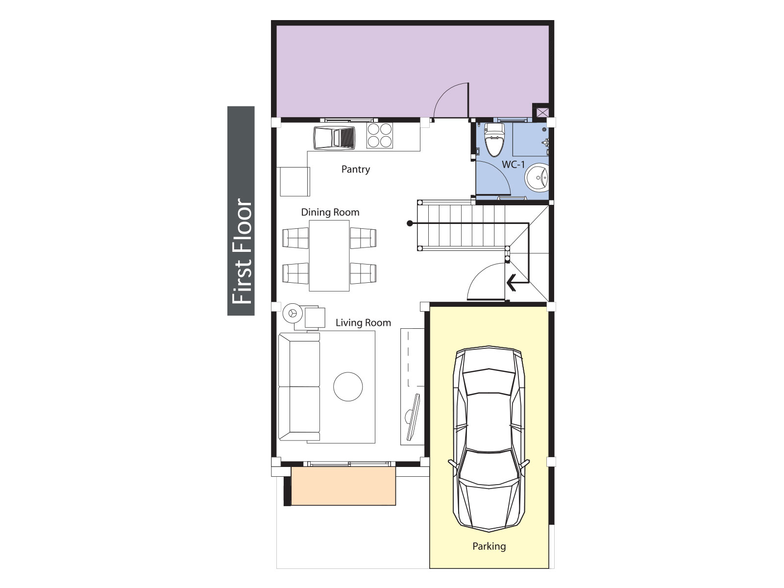 ทาวน์โฮม 2 ชั้น ขนาดพื้นที่ใช้สอย 110 ตร.ม. หน้ากว้าง 6 ม. 3 ห้องนอน 2 ห้องน้ำ 1 ห้องรับแขก ส่วนเตรียมอาหาร ที่จอดรถ 1 คัน