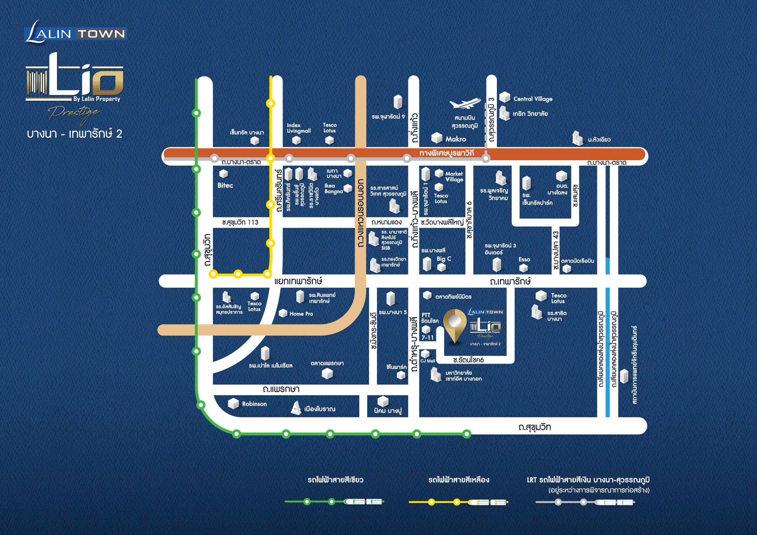 ทำเล บางนา-เทพารักษ์ เป็นทำเลศักยภาพที่ตอบโจทย์ทุกการเดินทาง เชื่อมต่อธุรกิจใจกลางเมือง เชื่อมต่อถ.เทพารักษ์ ถ.บางนา-ตราด ถ.สุขุมวิท และถ.ตำหรุ-บางพลี เดินทางสะดวกด้วยทางด่วนบูรพาวิถี ถ.วงแหวนกาญจนาฯ, พร้อมระบบขนส่งสาธารณะที่อำนวยความสะดวก รถไฟฟ้าสายสีเหลือง สถานีศรีเทพา รถไฟฟ้าสายสีเขียว สถานีสำโรง และรถไฟฟ้า LRT บางนา - สุวรรณภูมิ (ในอนาคต)