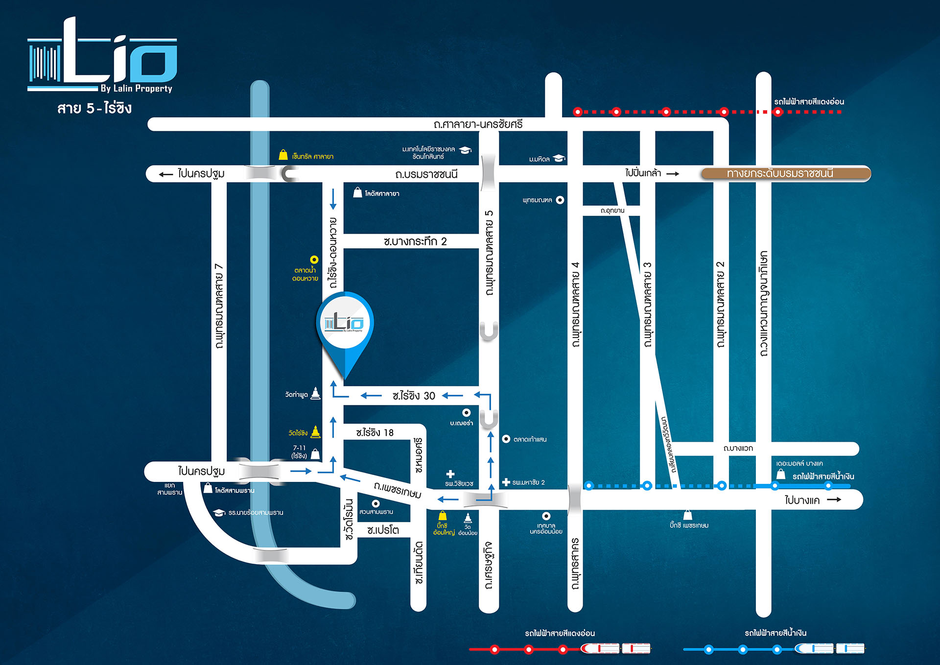 ทำเล สาย5-ไร่ขิง เป็นทำเลศักยภาพที่ตอบโจทย์ทุกการเดินทาง เชื่อมต่อเข้าเมืองได้สะดวก ด้วย ถนนบรมราชชนนี ถนนเพชรเกษม และส่วนต่อขยายรถไฟฟ้าสายสีน้ำเงิน ที่จะเปิดให้บริการต่อไป