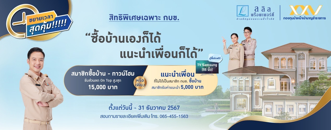 ขยายเวลาสุดคุ้ม!!! สำหรับสมาชิก กบข. เพียงซื้อบ้านหรือแนะนำเพื่อนซื้อบ้านที่ ลลิล พร็อพเพอร์ตี้